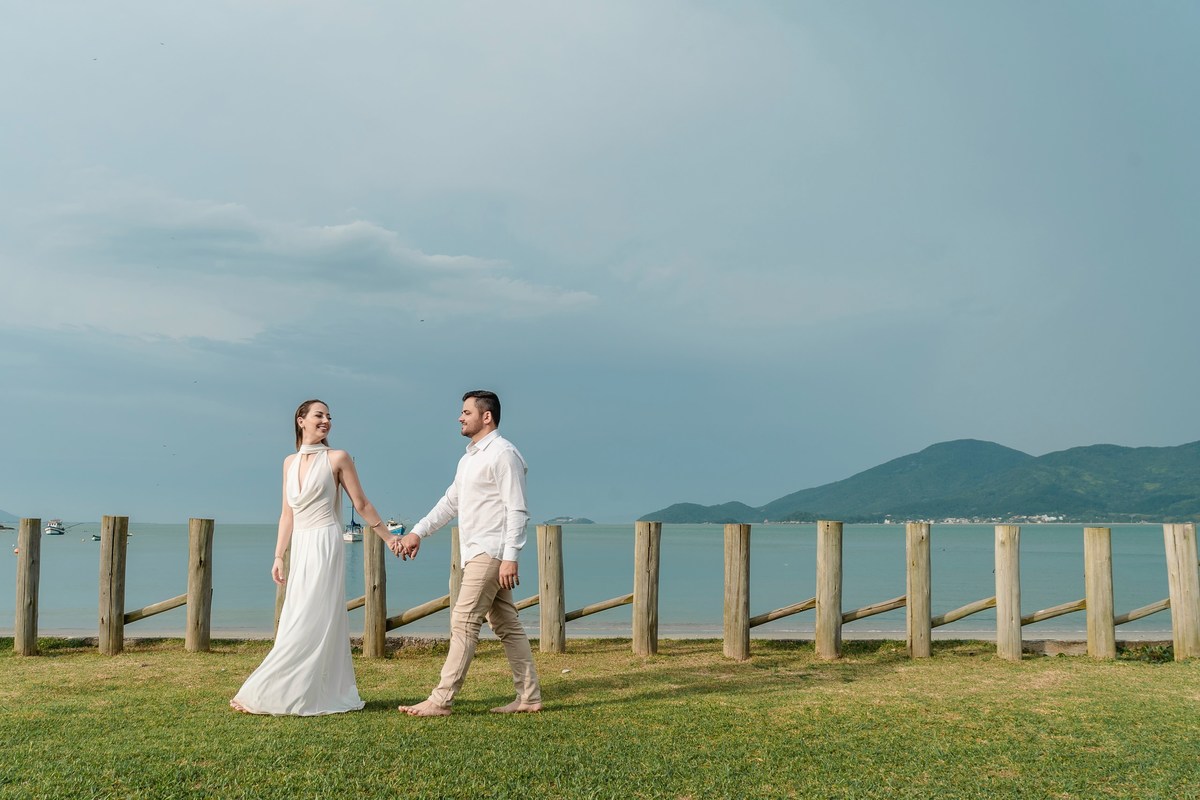 Em Governador Celso Ramos, o mar, as pedras e a brisa suave se tornaram o cenário perfeito para revelar a essência da relação deles: cumplicidade, alegria e intensidade. Nada forçado, apenas o amor se expressando de forma genuína, enquanto nosso olhar documental-editorial cuidava de eternizar cada detalhe com sensibilidade e sofisticação.