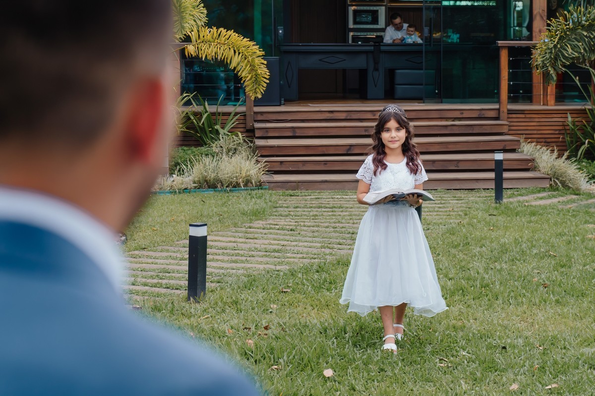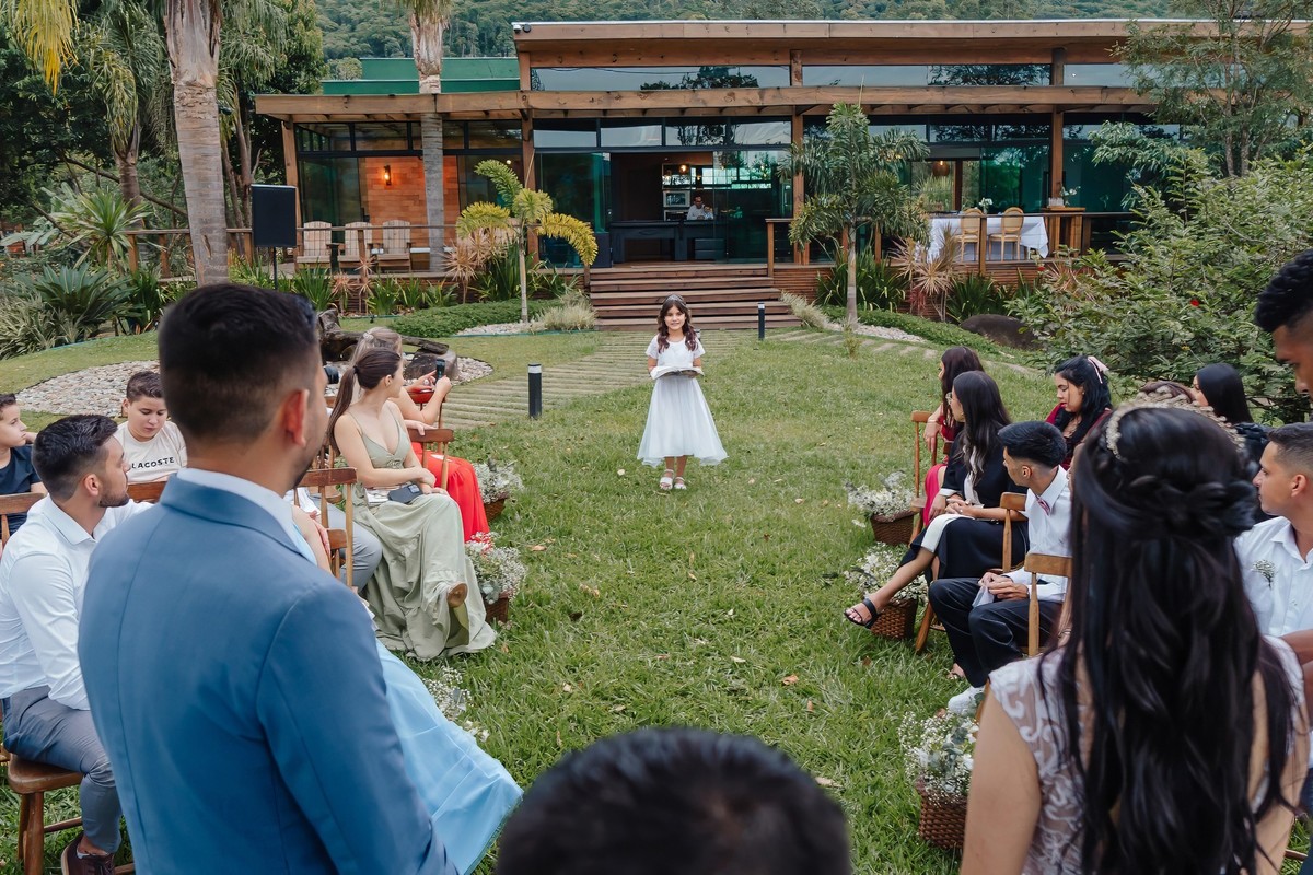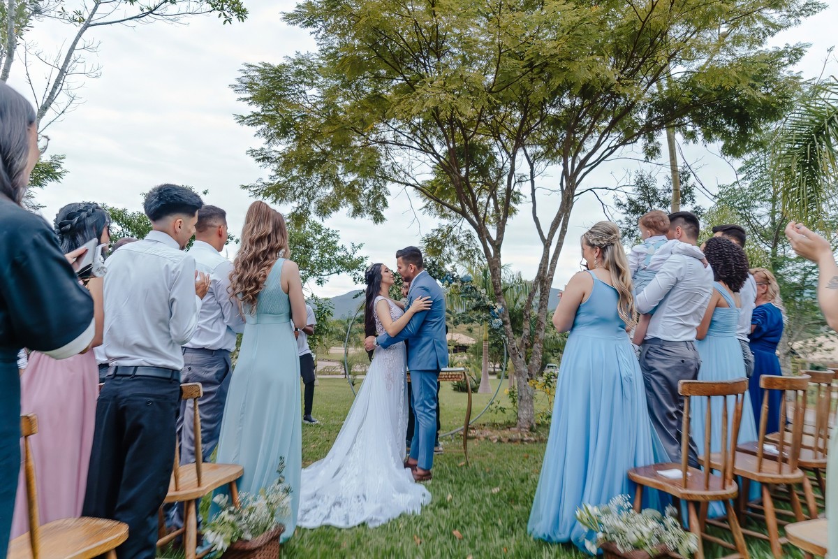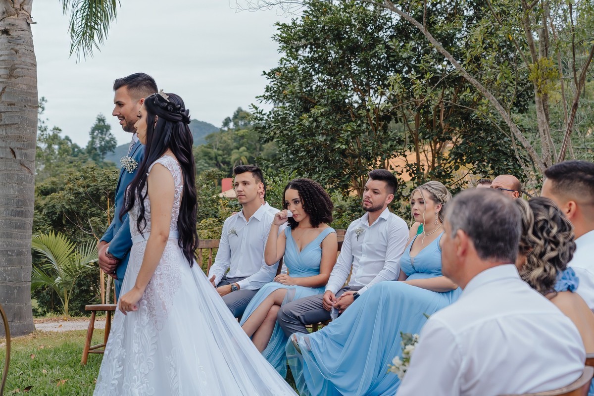 A história de Ale e Junior é um lembrete de como o amor pode ser generoso e cercado de amizades especiais. Nosso trabalho, um presente dado pelas madrinhas Dani e Kamila, foi um gesto de carinho e celebração à vida desse casal. O dia foi, literalmente, abençoado: embora tudo indicasse que a chuva pudesse atrapalhar, o céu se manteve apenas nublado, como um cenário perfeito que seguiu firme até o início da noite, permitindo que cada momento fosse registrado com tranquilidade e emoção.